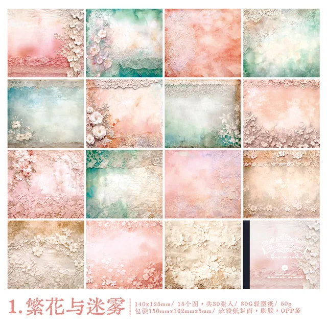 30pcs/lot Vintage mist and flowers material paper suitable for journal scrapbooking card making