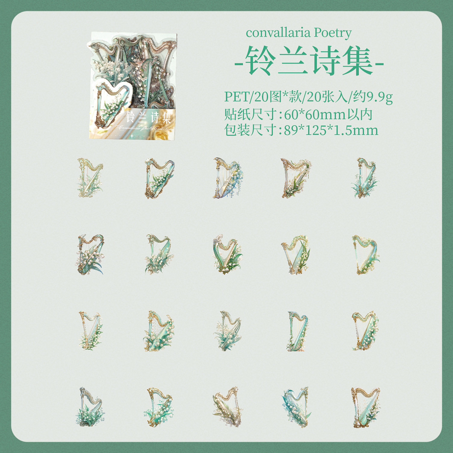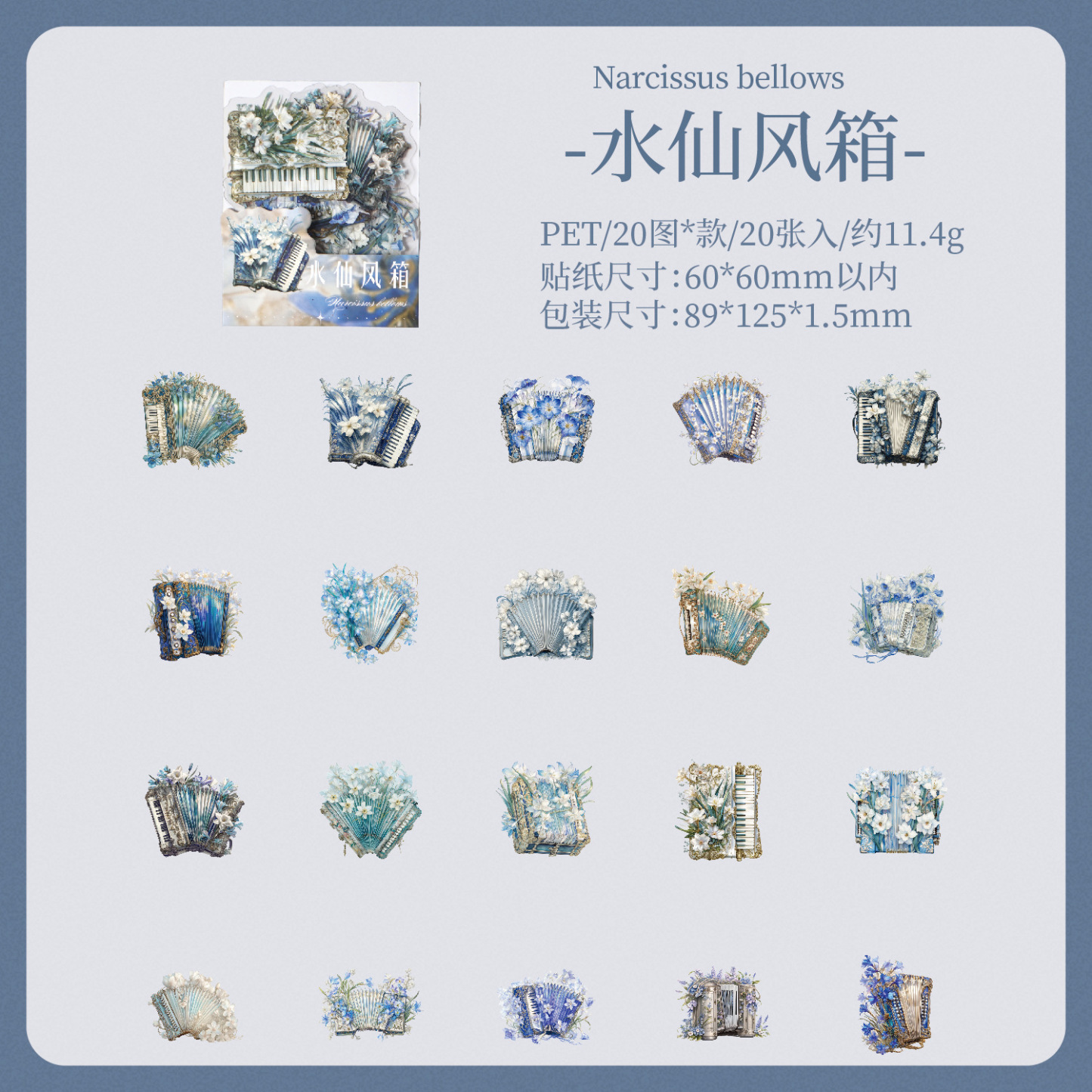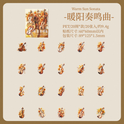 20pcs/Pack Flower Musical Instrument Theme PET Stickers